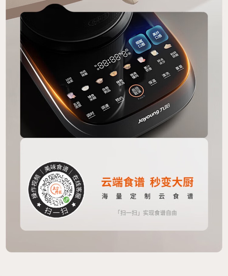 【精选】九阳(Joyoung)(XZXQ)轻音破壁机 家用榨汁机豆浆机1.75L大容量 口感可调 多重降噪 变频轻音 触控彩屏 破壁机B1 Pro
