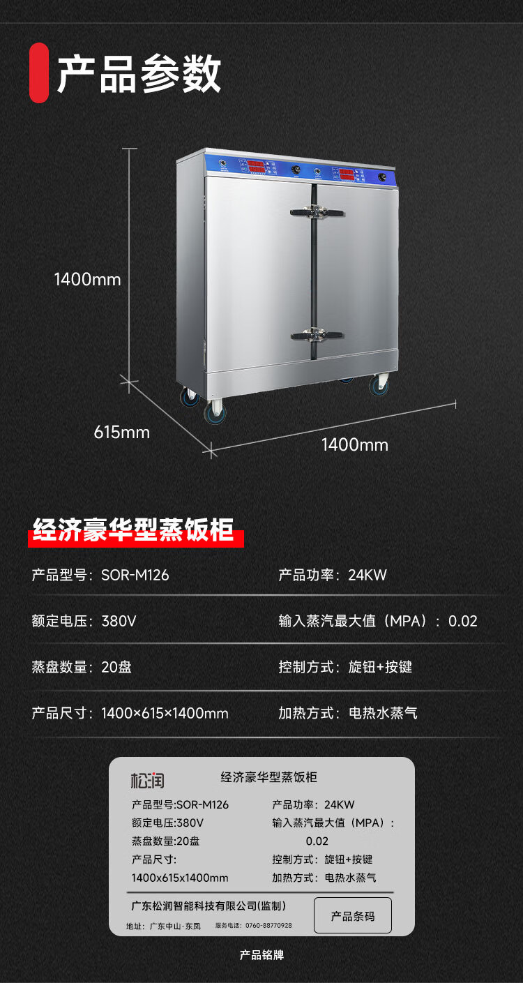 商品名称:【精选】松润 SOR-M130 1400*1005*1555 48盘微电脑型蒸饭柜