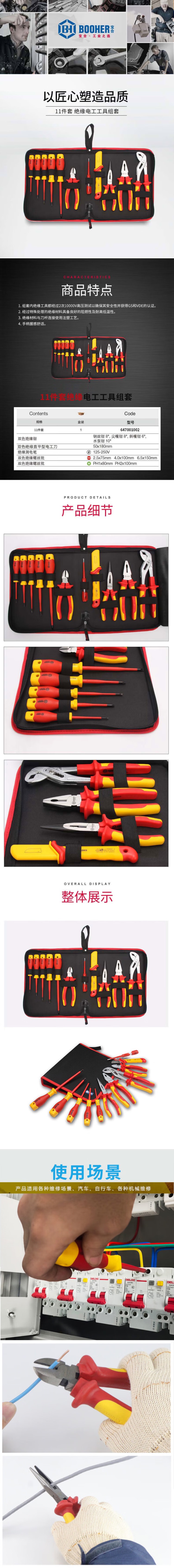商品名称:【精选】宝合 647001002 11件绝缘电工工具组套 (计价单位:套)