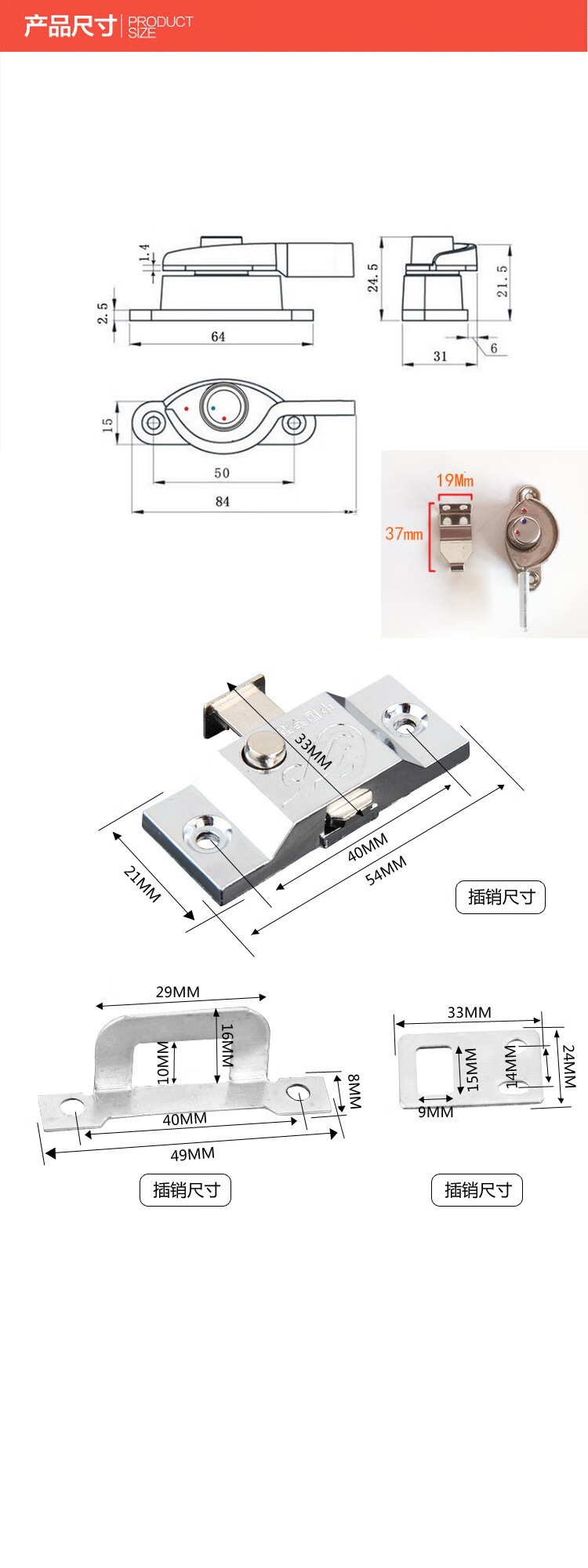 商品名称:【精选】华翼 GJC-HY30050 门窗月牙锁 孔距50mm (计价单位:个)