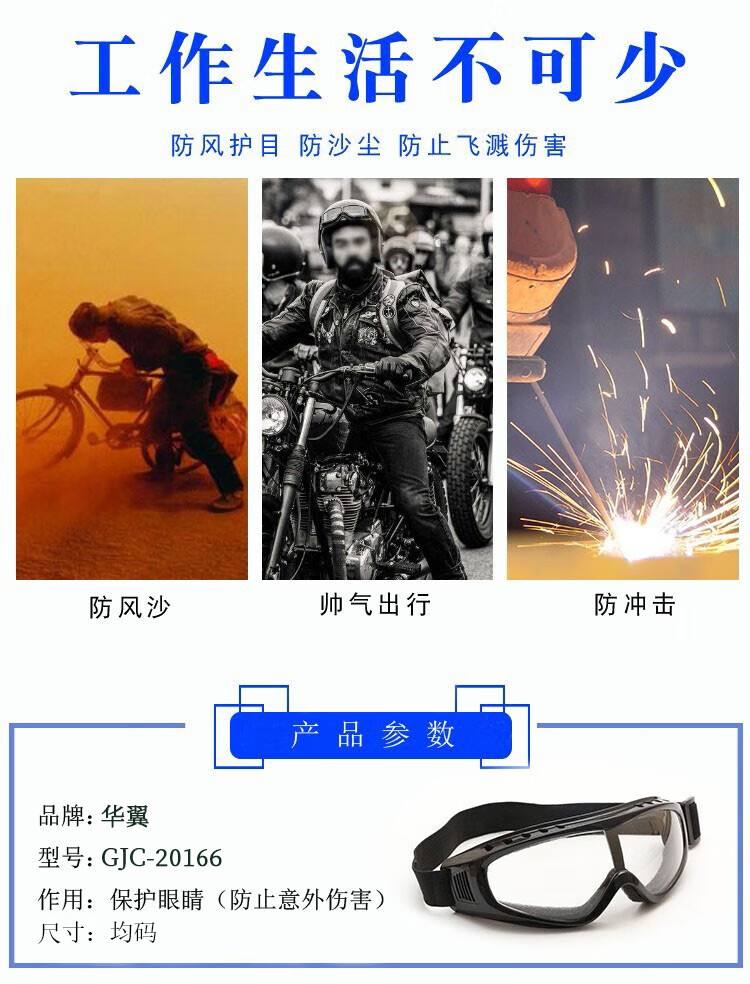 商品名称:【精选】华翼 GJC-20166 防灰尘密封全封闭透明护目镜 配色 单位:副