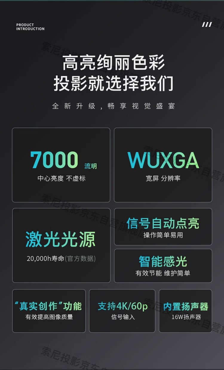 商品名称:【精选】索尼(SONY) 办公投影机 商务激光投影仪 VPL-P630HZ (WUXGA 7000流明中心亮度 镜头位移)