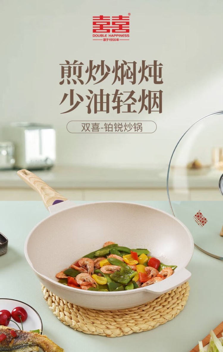 商品名称:【精选】双喜 (GBPLW) 麦饭石不粘锅 平底锅家用锅具套装 铂锐系 铂锐炒锅34cm 电磁炉燃气通用 含玻璃盖