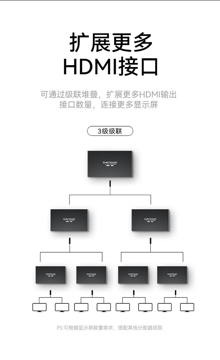商品名称:【精选】胜为 HDMI 分配器一分四 一进四出分屏器 配3C电源适配器 笔记本电脑智能盒子连接电视投影仪显示器HP-104