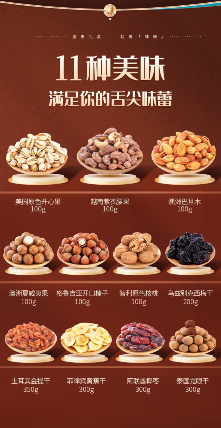 商品名称:【精选】臻味 环球欣果坚果礼盒 2.05kg 坚果炒货(单位:盒)