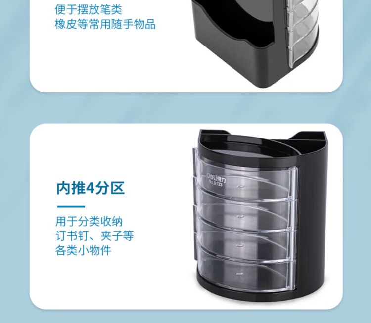 商品名称:【精选】得力(deli) 9133 92*105mm 笔筒 (计价单位:个) 多功能 四层 黑色