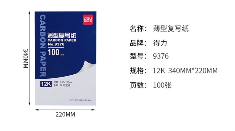 商品名称:【精选】得力(deli) 9373 32K 薄型 100页/盒 复写纸 (计价单位:盒) 蓝色