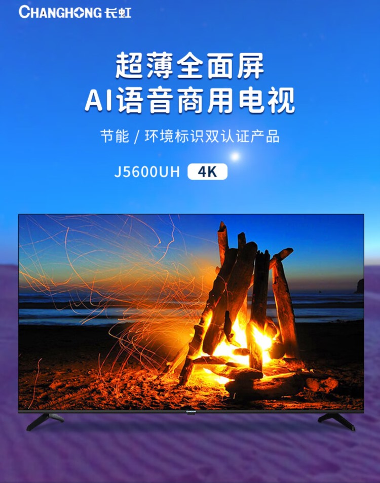 商品名称:【精选】长虹 55J5600UH 4K超高清 免遥控语音2+32GB HDR液晶LED电视机 安卓智能商用电视 55英寸 (计价单位:台)