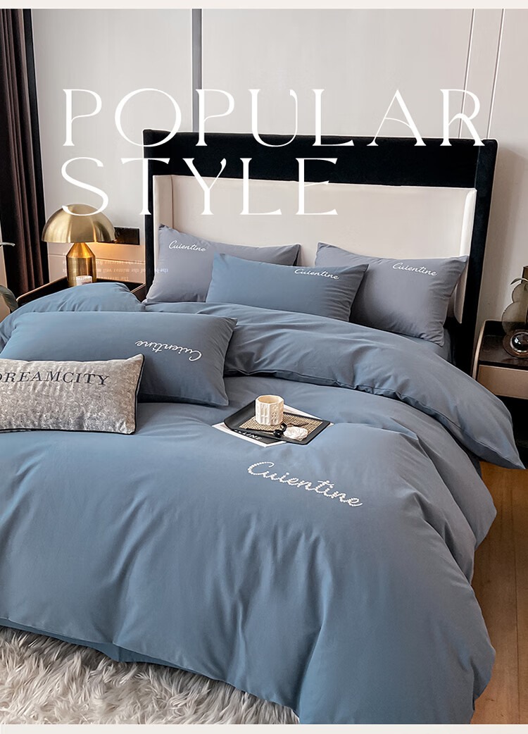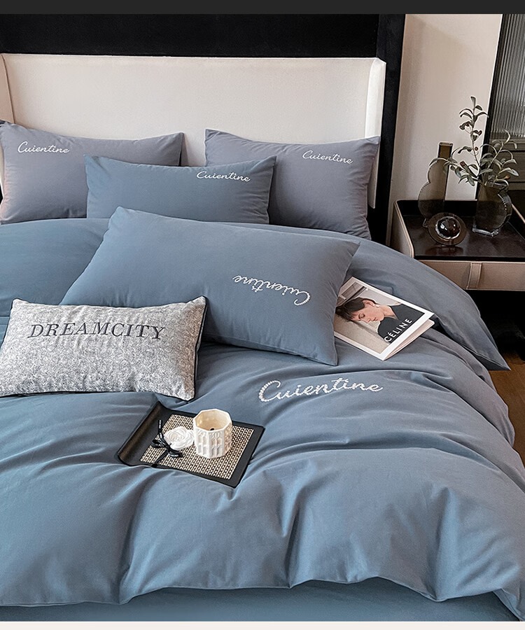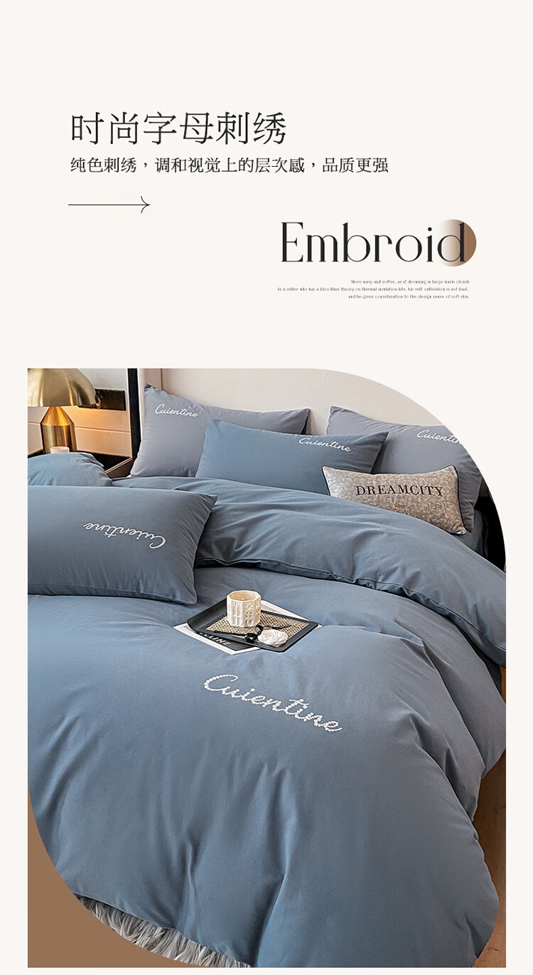 【精选】洁曼娜 XR-JMN03 水洗磨毛刺绣款四件套 床单款 宾利蓝 适合2.0米床(单位:套)