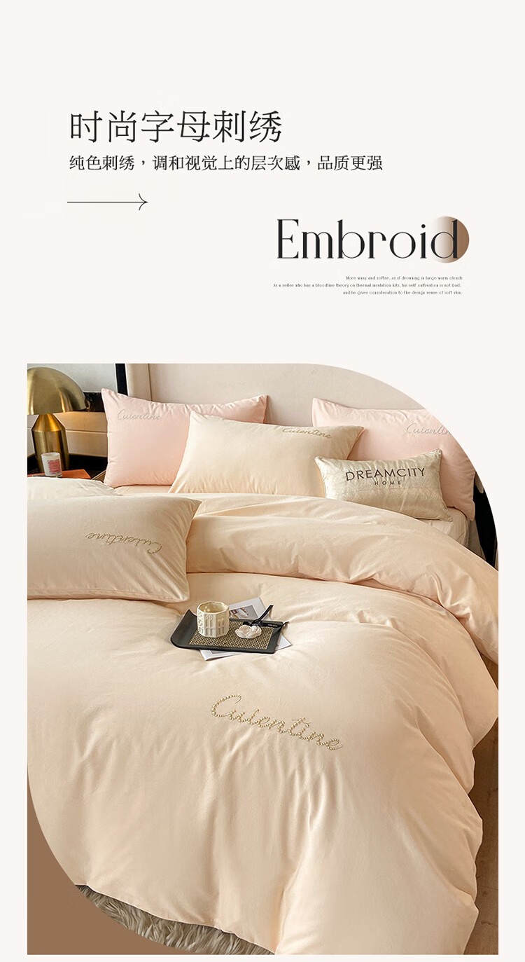 【精选】洁曼娜 XR-JMN05 水洗磨毛刺绣款四件套 床单款 奶昔白 适合1.5-1.8米床(单位:套)