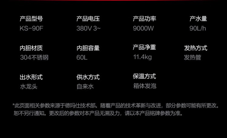 商品名称:【精选】德玛仕(DEMASHI) KS-90F(发泡款) 380V 电热开水器 (计价单位:台)
