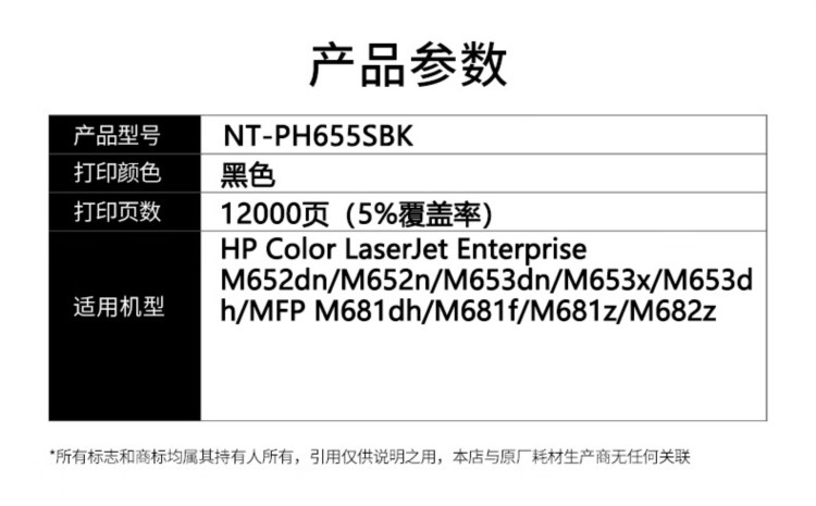 商品名称:【精选】欣格 碳粉盒 NT-PH655SBK CF450A 黑色适用惠普652 653 681系列#