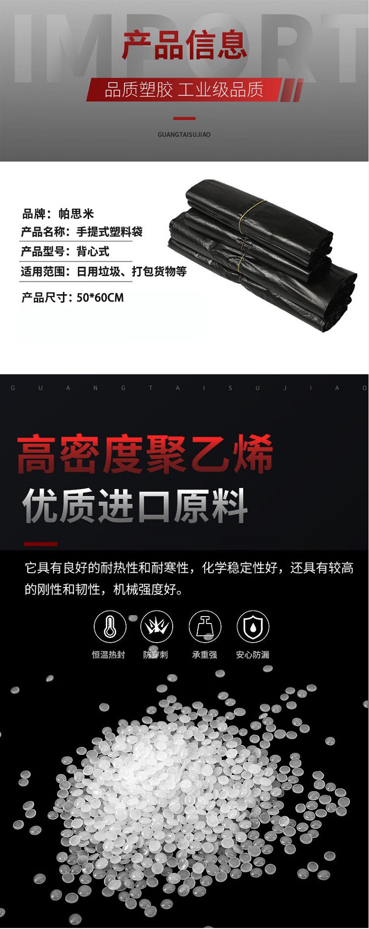 商品名称:【精选】帕思米 手提式塑料袋 GJC-PSM10009 2丝 50*60cm 50个/扎 (黑色)