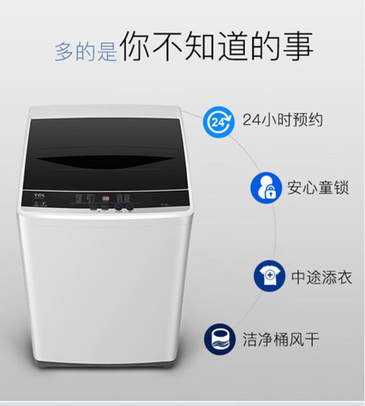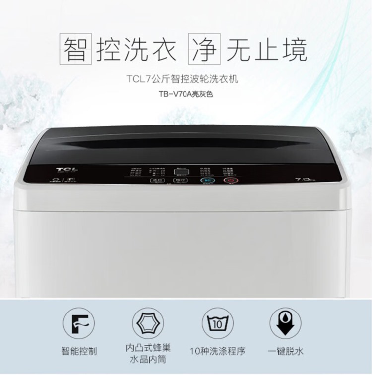 商品名称:【精选】TCL TB-V70A 全自动波轮洗衣机 7公斤容量洗衣机 三级能效 定频波轮 亮灰色(单位:台)