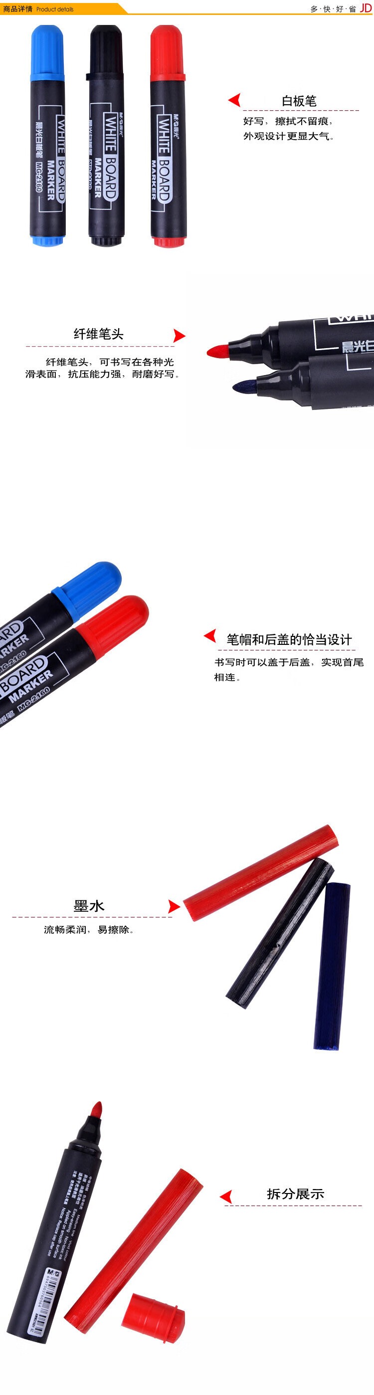 商品名称:【精选】晨光 M&G 白板笔 MG-2160 2.0mm (黑色) 12支/盒 (大包装)