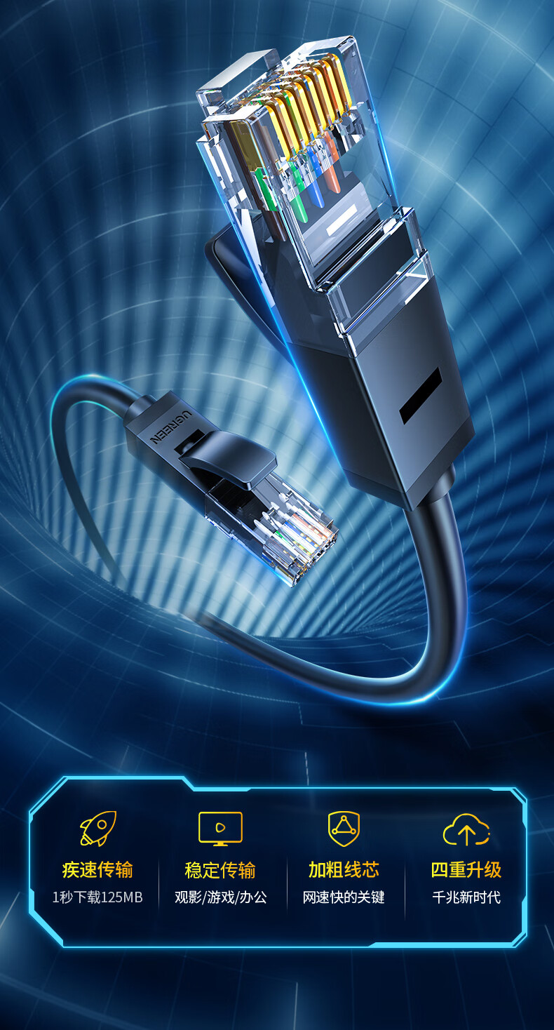 商品名称:【精选】绿联 20161 3米 六类网线 (计价单位:条) 黑色