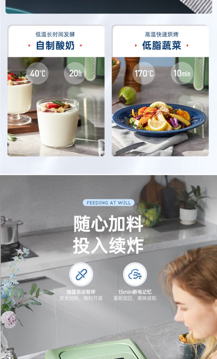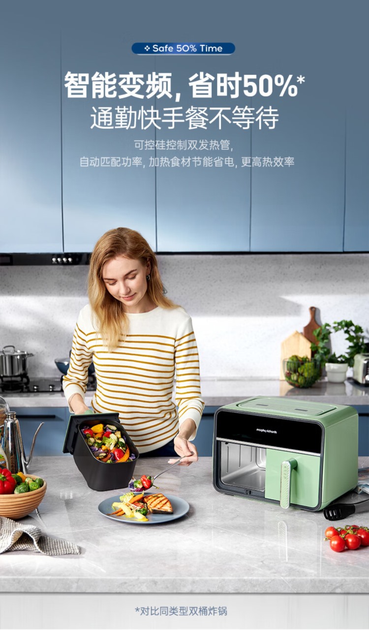 商品名称:【精选】摩飞电器(Morphyrichards) MR8100 双仓空气炸锅 容量4L+4L (计价单位:台) 椰奶白