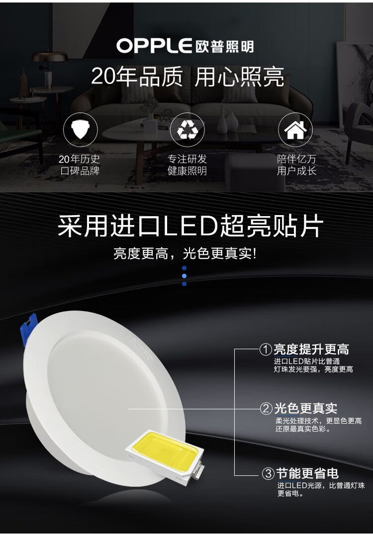 商品名称:【精选】欧普照明(OPPLE)(GBHX)LED 皓易II-9W-4000K 筒灯 开孔尺寸(120-125mm)暖白光