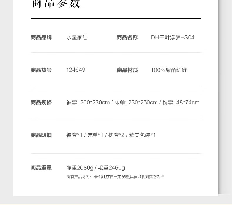 商品名称:【精选】水星家纺 DH弦音-S04 弦音磨毛印花四件套 适用1.5米床 被套*1 床单*1 枕套*2 (计价单位:套)