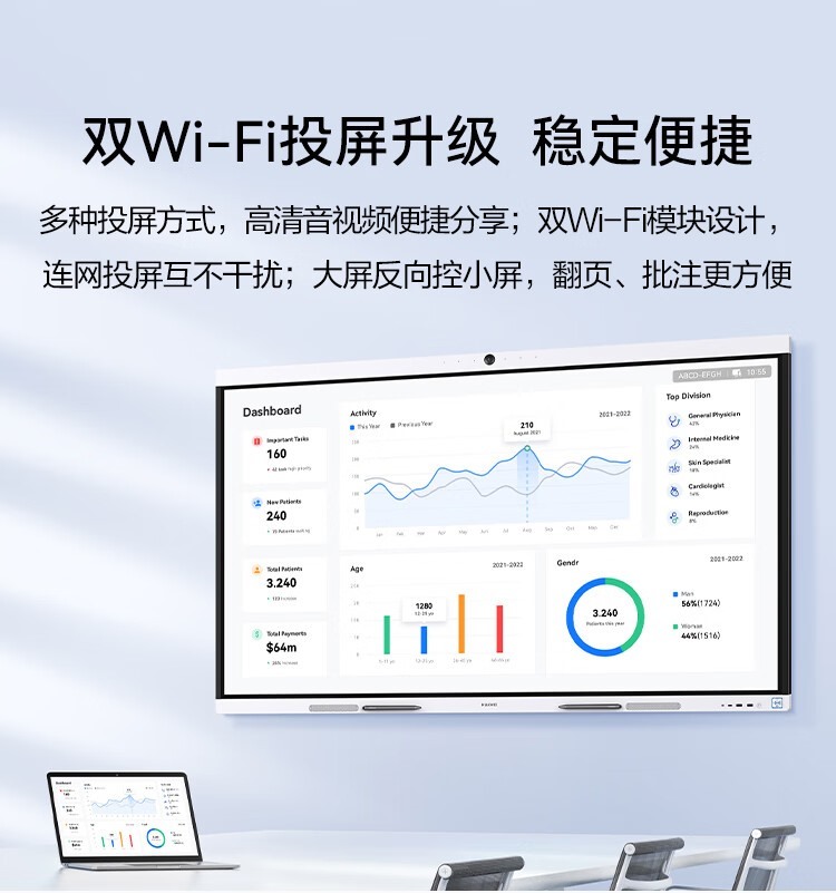 商品名称:【精选】华为(GBSSX)65英寸会议平板IdeaHub B2视频会议一体机触摸会议电视教学电子白板企业协作办公宝 落地+Win10双系统