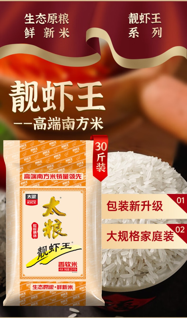 【精选】太粮 靓虾王 香软米 籼米 15kg
