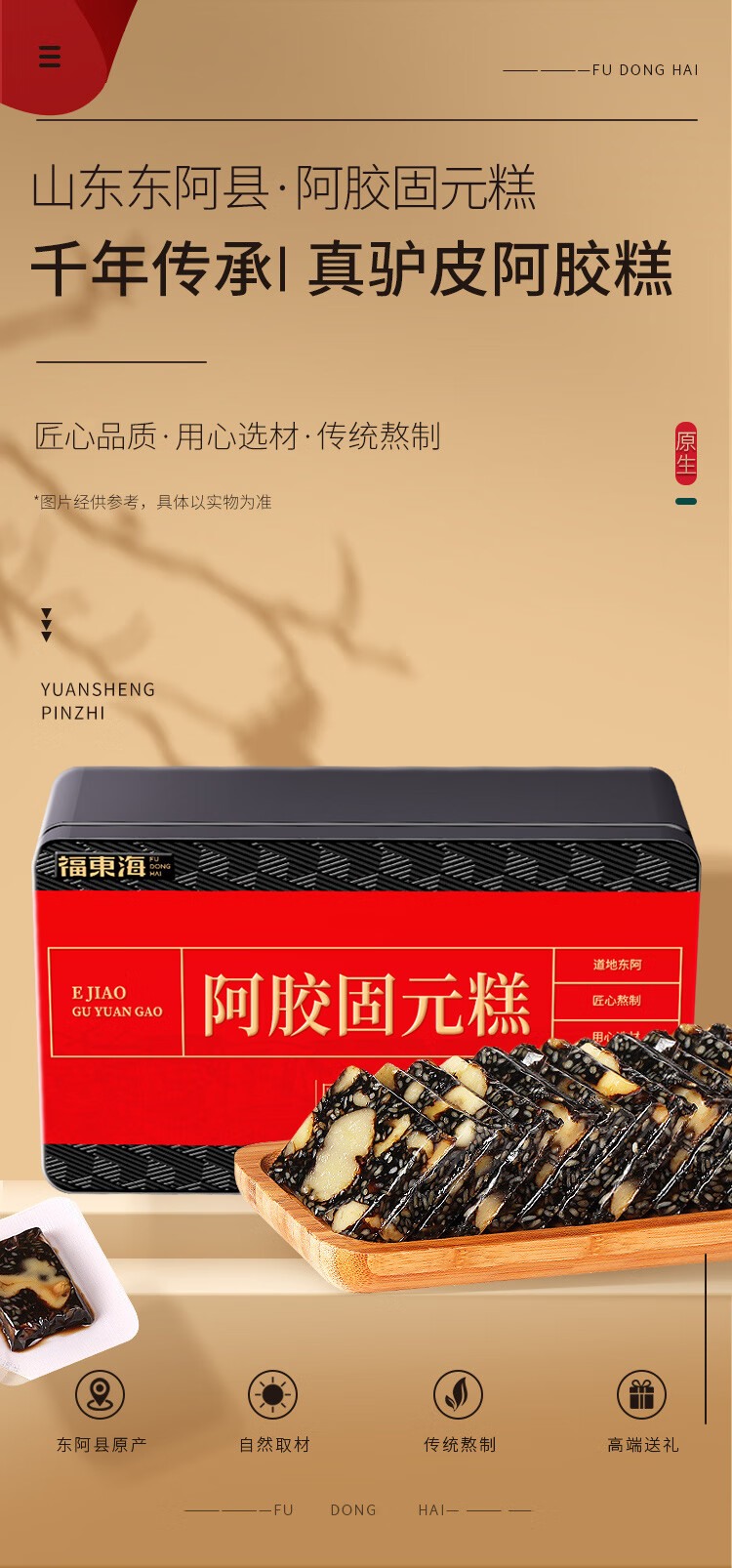 商品名称:【精选】福东海(GBHX) 阿胶固元糕 500g 单位:盒