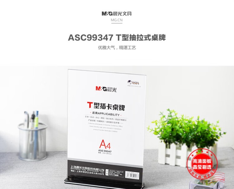 商品名称:【精选】晨光 M&G T型竖式抽拉式桌牌 ASC99347 A4