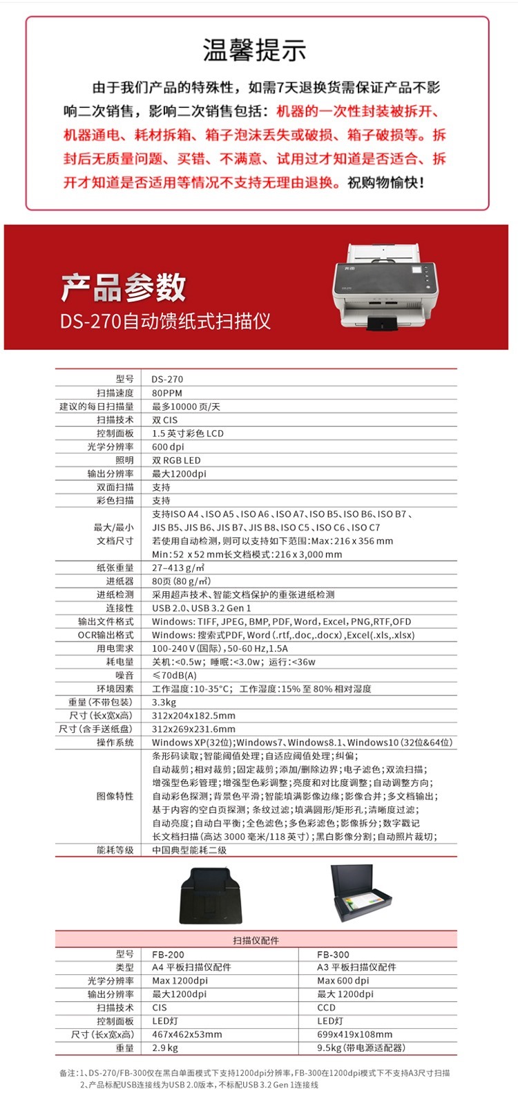商品名称:【精选】奔图 DS-270 馈纸式扫描仪 双面扫描 自动进纸(单位:台)