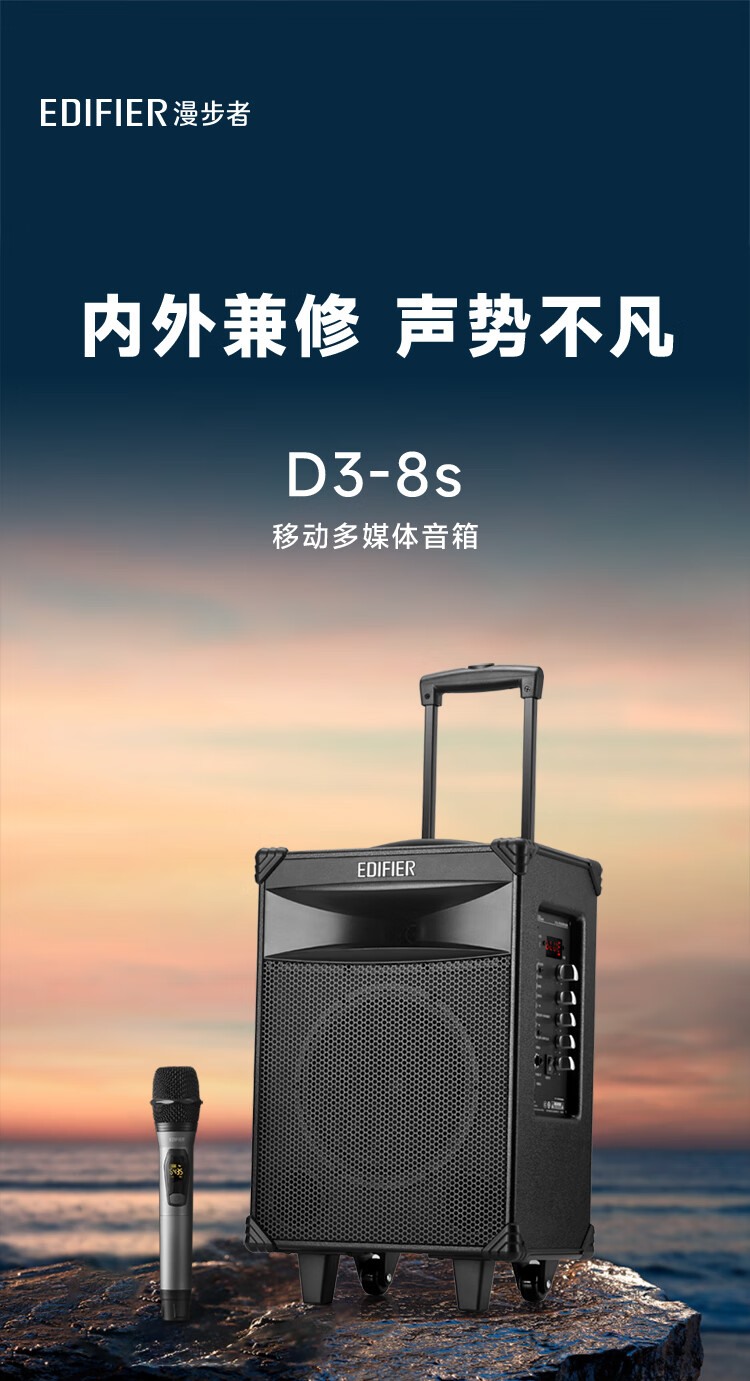 商品名称:【精选】漫步者 蓝牙拉杆音箱 户外音响 D3-8s 8英寸专业广场舞音响 标配无线麦克风EDF180004