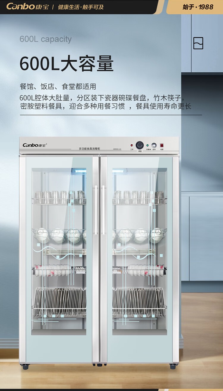 商品名称:【精选】康宝/Canbo 消毒柜 XDZ600-A3 立柜式 臭氧 紫外线消毒 600L 1615W 一星消毒