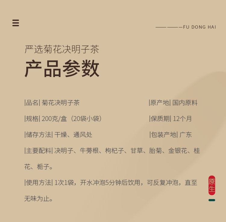 商品名称:【精选】福东海(GBHX)菊花枸杞决明子茶 200g