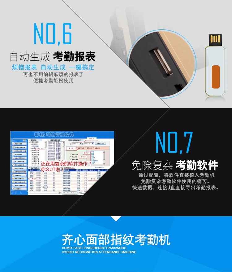 商品名称:【精选】齐心 DS2600 面部指纹考勤机 190*140*90mm (计价单位:台) 黑色+金色框