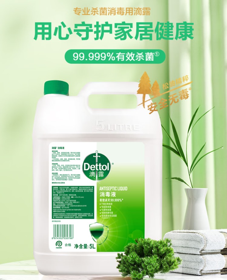 商品名称:【精选】滴露(Dettol) 超值量贩装(松木香) 5L 消毒液 (计价单位:瓶)