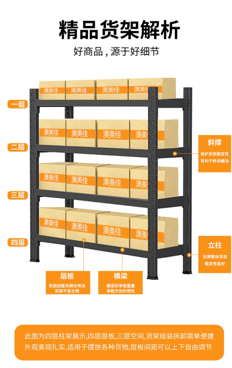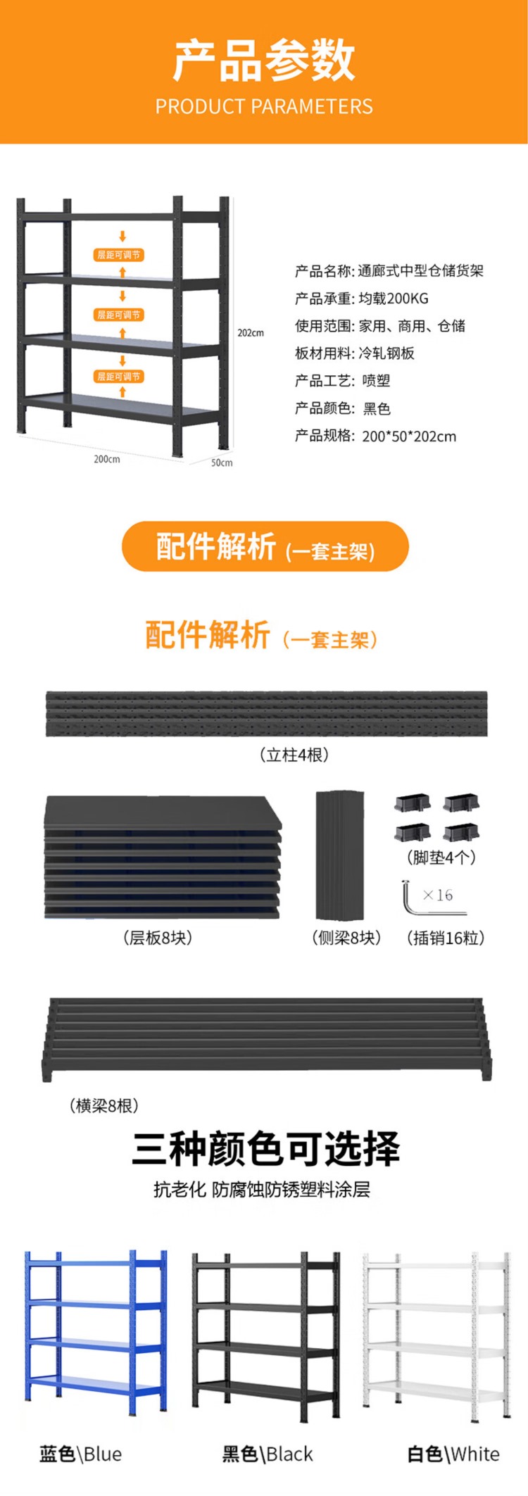 商品名称:【精选】澳美佳 中型通廊式仓储货架 200*50*202cm (计价单位:组) 黑色