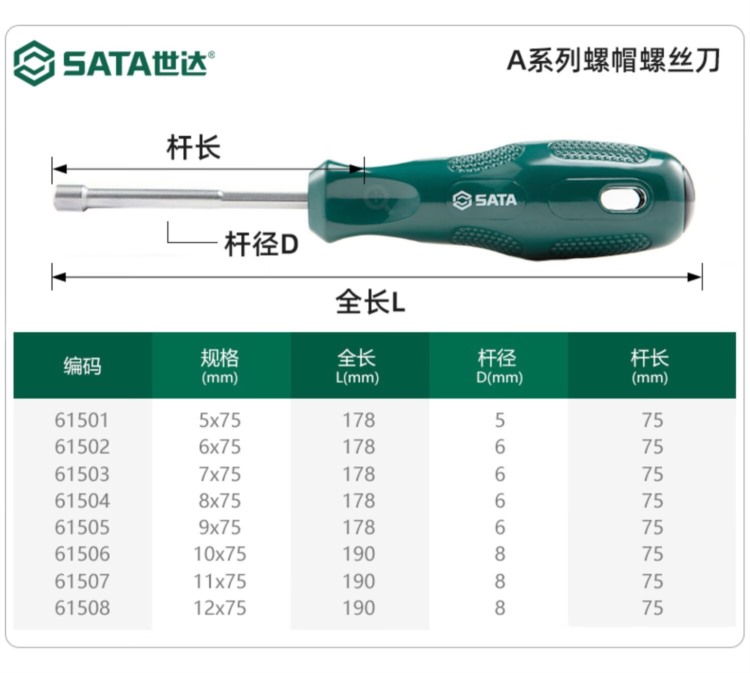 商品名称:【精选】世达 62211 A系列一字形螺丝批 6*38mm (计价单位:个)