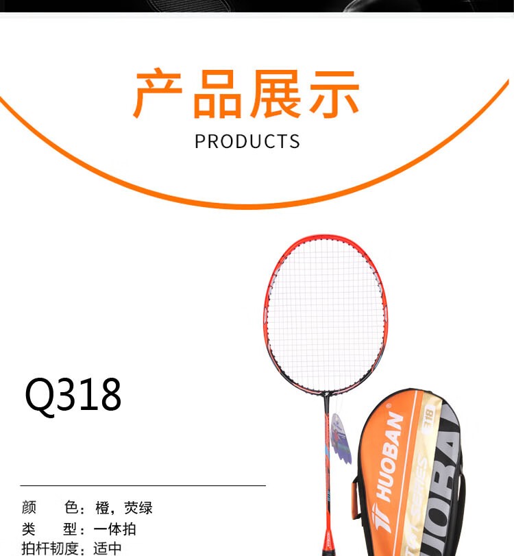 商品名称:【精选】运动伙伴 Q318 碳铝模压羽毛球拍 一体拍 2支装 (计价单位:副) 荧光绿