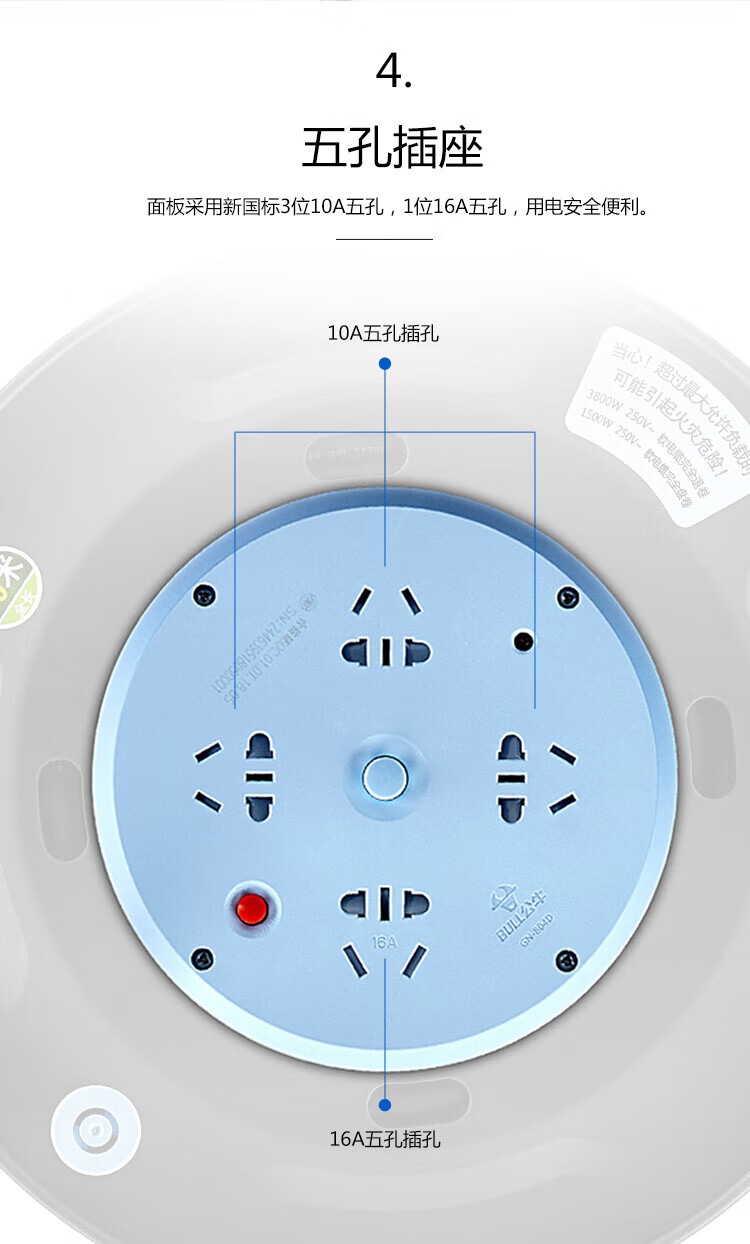 商品名称:【精选】公牛(XZXQ) GN-804D 16A大功率4位总控开关卷线盘 30米(2.5平方)