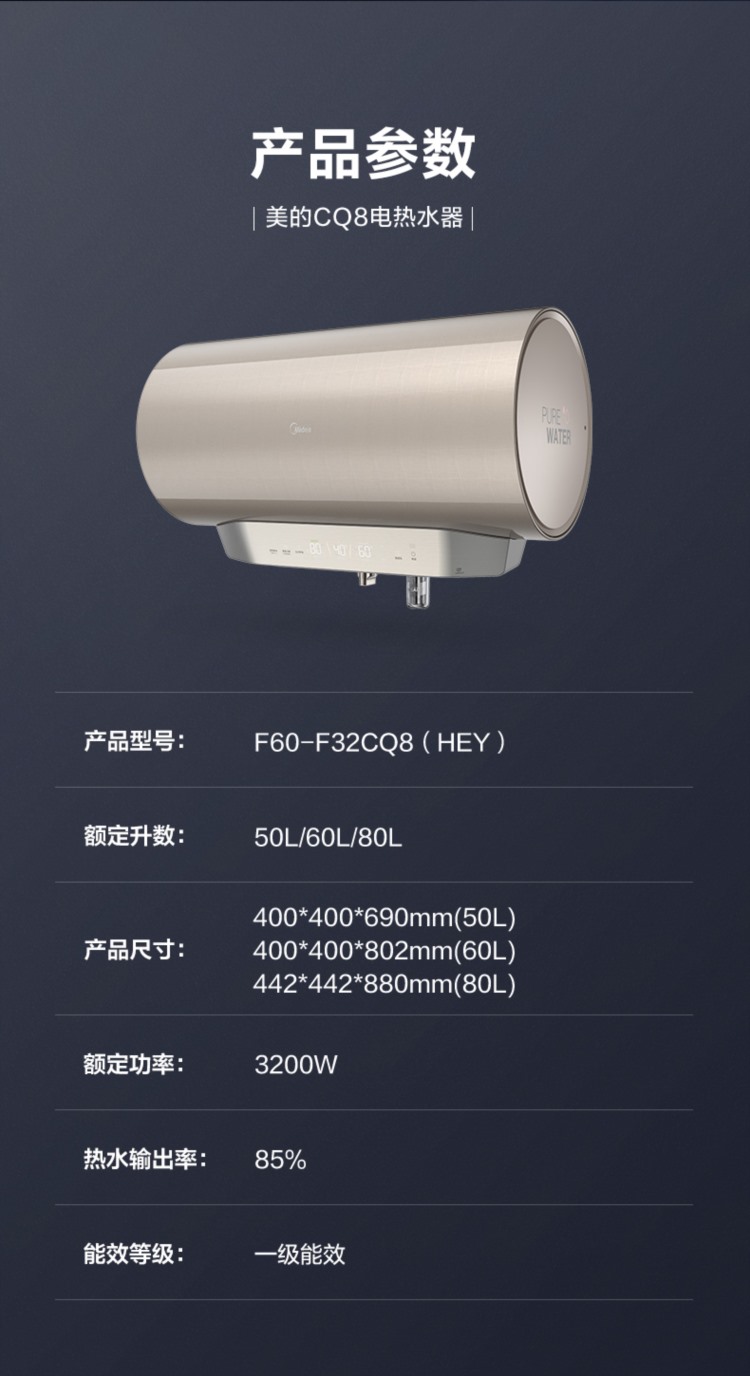 商品名称:【精选】美的/Midea F60-F32CQ8(HEY) 智能电热水器60升 (单位:台)