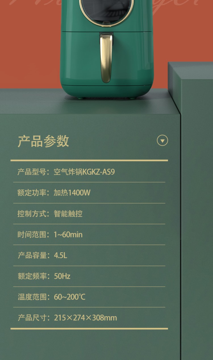 商品名称:【精选】康佳 KGKZ-AS9 家用高端空气炸锅 4.5L (计价单位:台) 墨绿色