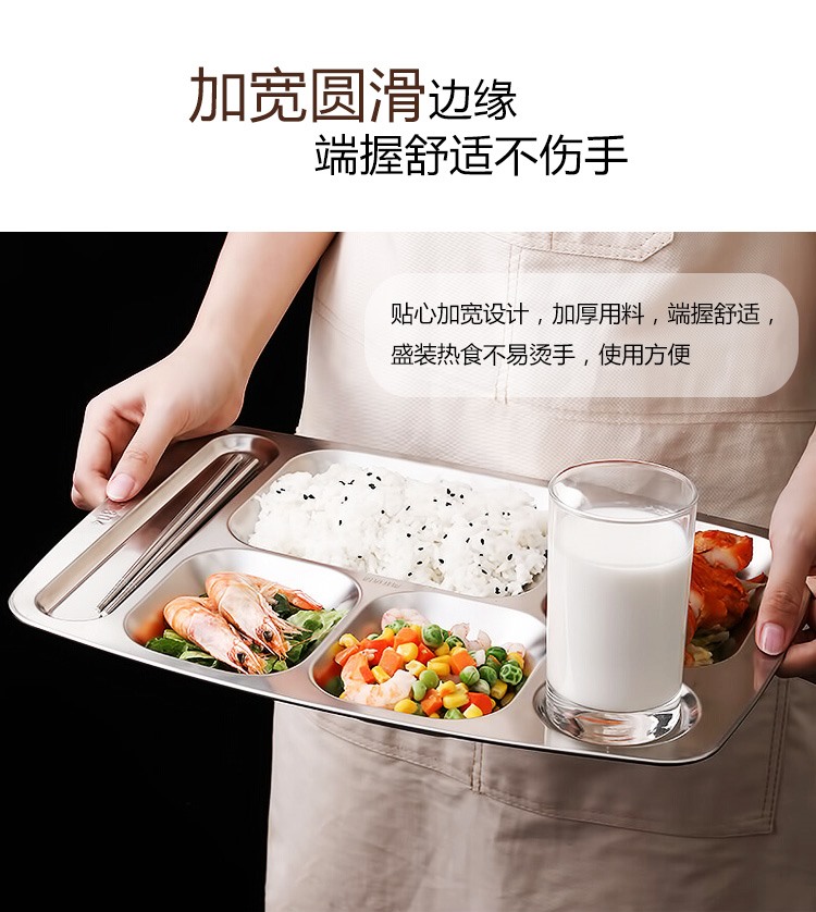 商品名称:【精选】匠行 304不锈钢大六格餐盘 36.5*27*3cm