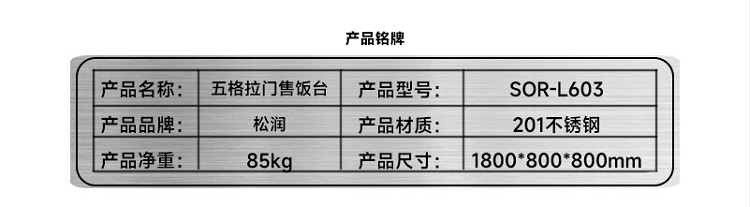 商品名称:【精选】松润SOR-L604 1500*800*800 4D四格拉门售饭台银色 (单位:台)