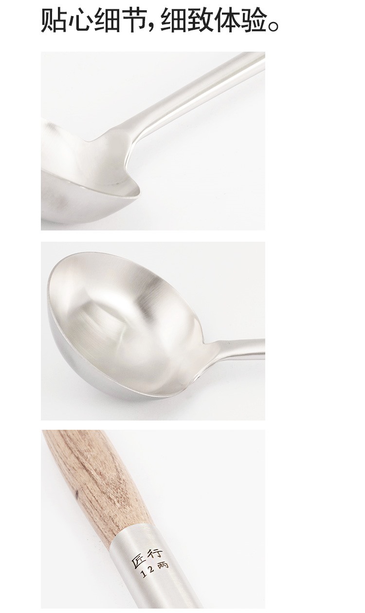 商品名称:【精选】匠行 木柄炒勺 10两 木柄苏壳不锈钢