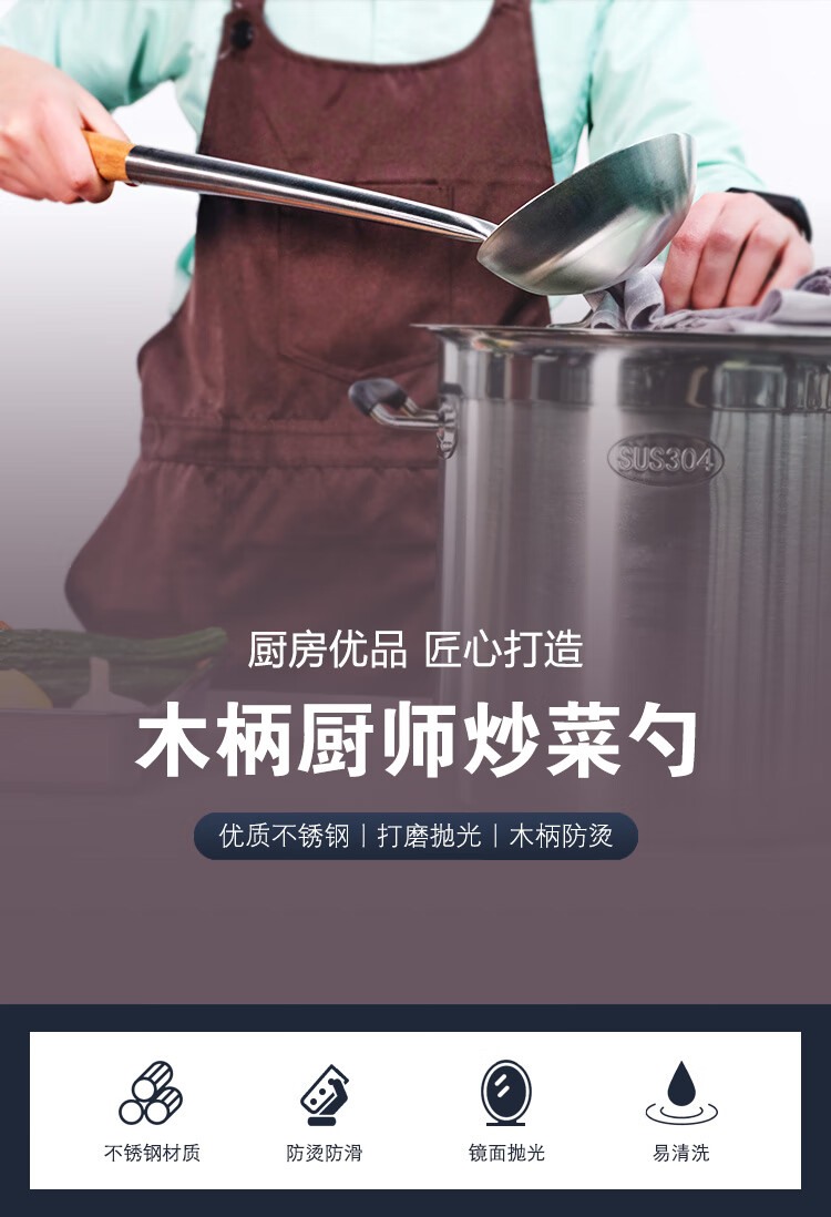 【精选】匠行 木柄炒勺 12两 木柄苏壳不锈钢