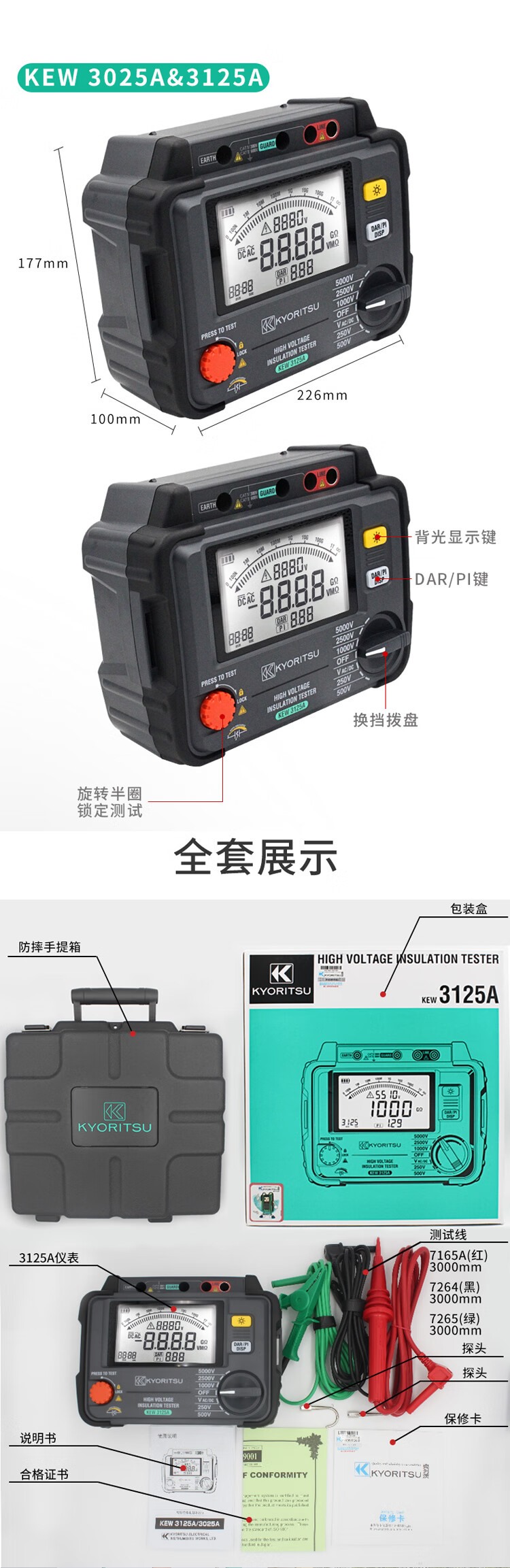 商品名称:【精选】克列茨 KEW3125A 250V-5000V 高压绝缘电阻测试仪 (计价单位:个)