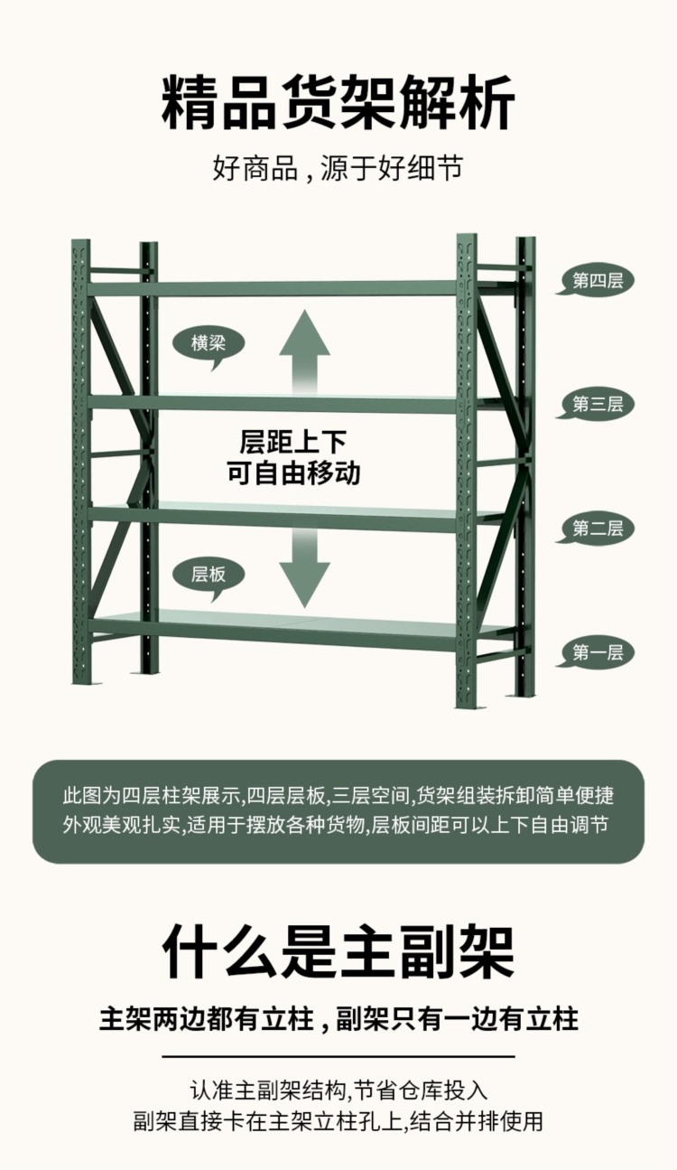商品名称:【精选】澳美佳 中型仓储货架 主架200*50*200cm (计价单位:组) 军绿色