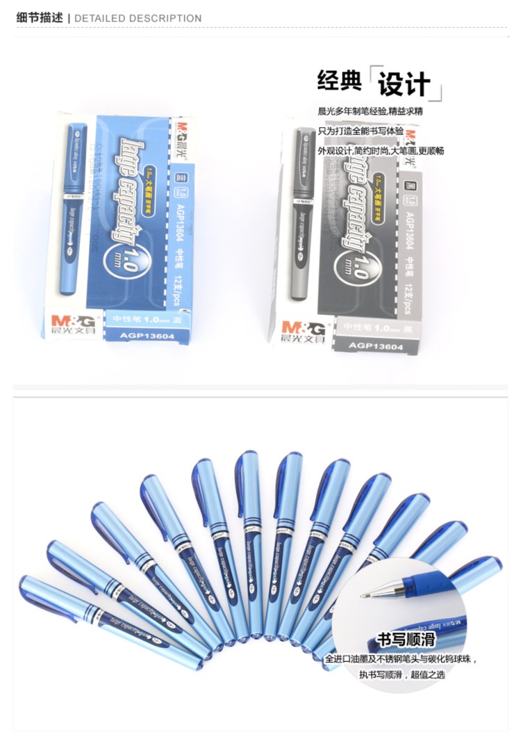 商品名称:【精选】晨光 M&G 拔帽大笔画中性笔 AGP-13604 1.0mm (蓝色) (替芯:AGR67017)
