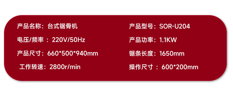 商品名称:【精选】松润SOR-U202 540*450*890 锯骨机银色(单位:台)