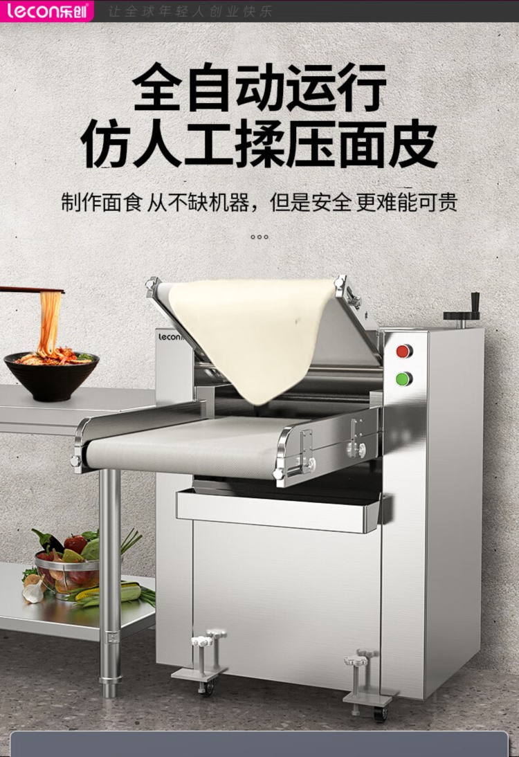 商品名称:【精选】乐创(lecon)LC-J-YMZ500A 商用压面机 900kg/h自动擀面皮机 1300*770*1130mm(单位:台)