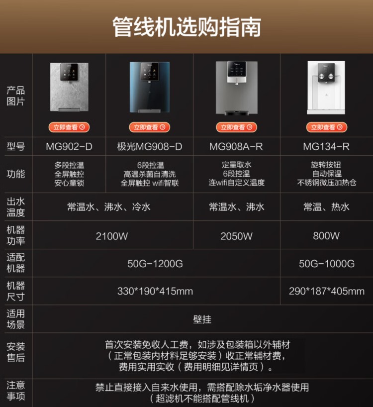 商品名称:【精选】美的(Midea) MG908-D (GBQX) 壁挂式管线机 全通量适配 多段控温(单位:台)
