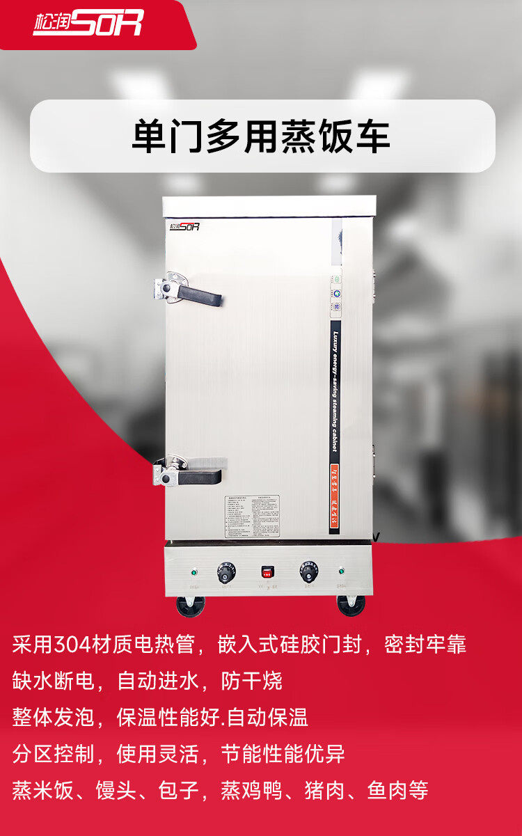 商品名称:【精选】松润SOR-M107 680*580*780 4盘单门蒸饭柜银色(单位:台)